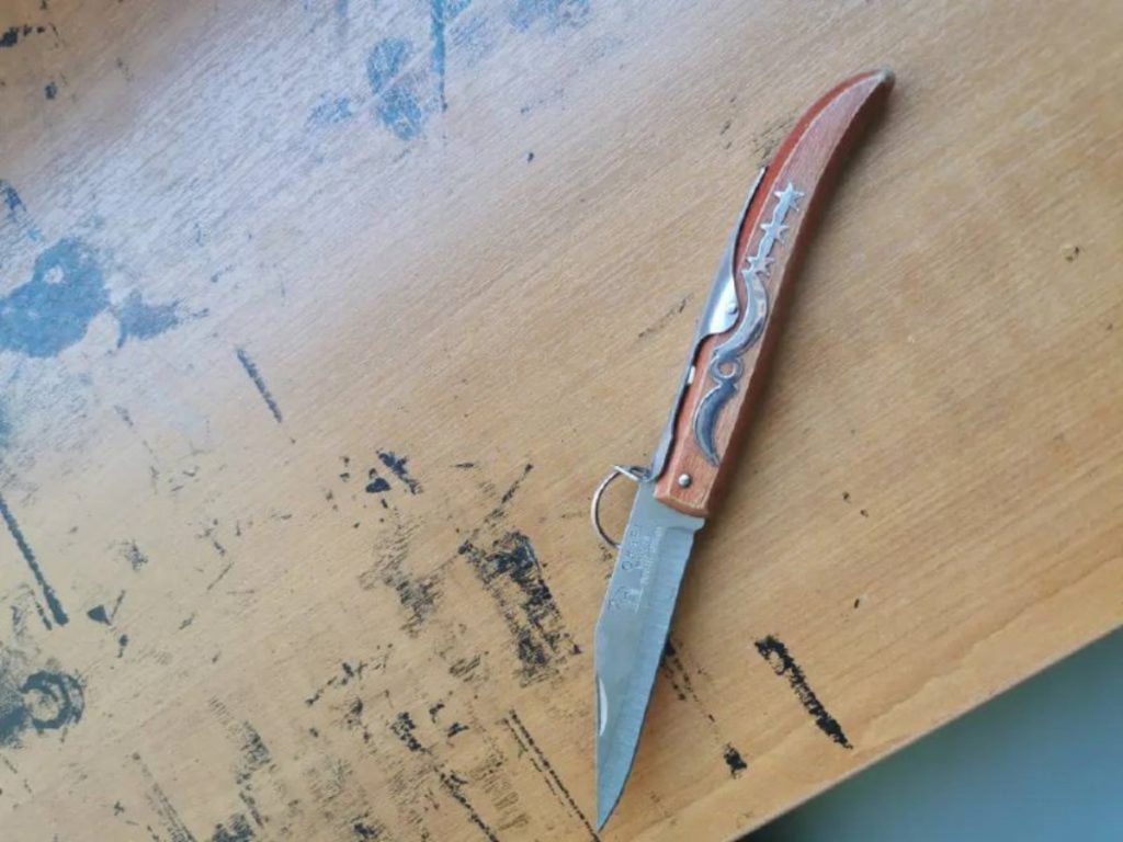 Κατά τη διάρκεια σωματικού ελέγχου, οι αστυνομικοί βρήκαν πάνω του τον αναδιπλούμενο σουγιά, ο οποίος είχε πάνω κηλίδες αίματος.