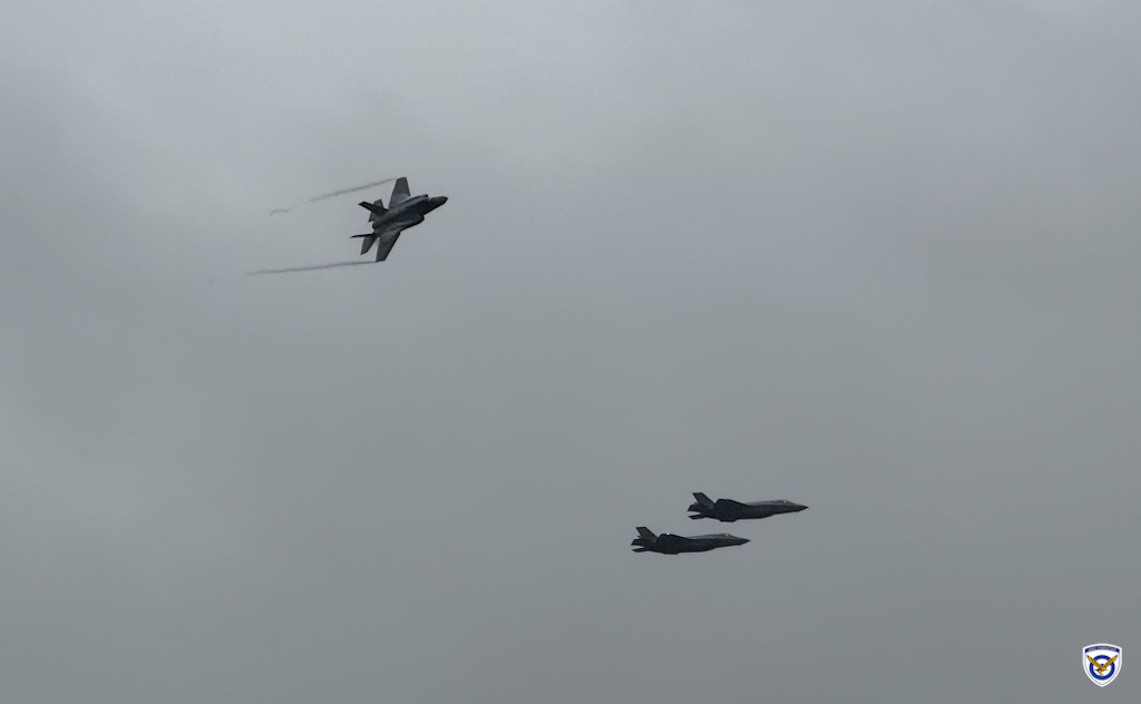Αεροσκάφη F-35 ετοιμάζονται να απογειωθούν στο πλαίσιο της τελετής παραλαβής του πρώτου f-35 στην Ελληνική Αεροπορία.