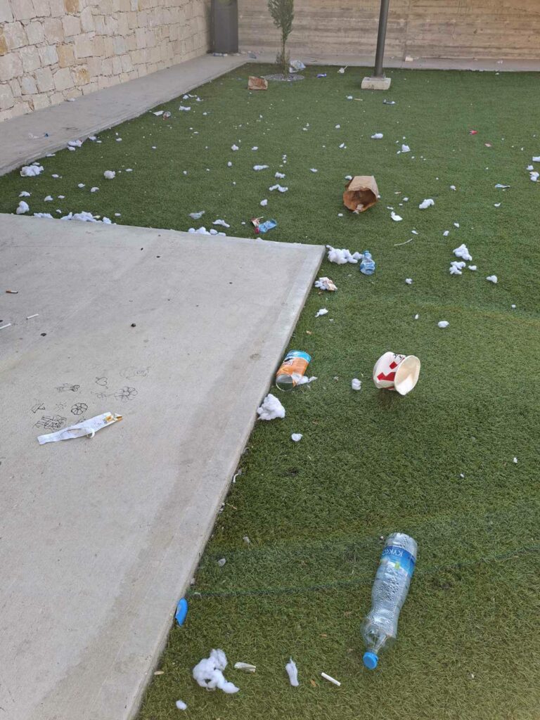 Εκφράζουμε την αγανάκτησή μας και ζητούμε άμεσα μέτρα προστασίας του χώρου, ώστε να διαφυλαχθεί η ασφάλεια και η πολιτιστική αξία του κέντρου, τόνισε. Δυστυχώς τα πράγματα με την νεανική παραβατικότητα έχουν εξοκείλει και οι ηθικές αρχές σχεδόν ανύπαρκτες, επισημαίνει.