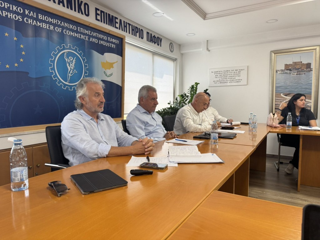 Σε συνάντηση που πραγματοποιήθηκε πρόσφατα στα γραφεία του Επαρχιακού Οργανισμού Ανάπτυξης Πάφου (ΕΟΑ) αντιπροσωπεία του ΕΤΕΚ, με επικεφαλής τον Πρόεδρο του Επιμελητηρίου, Κωνσταντίνο Κωνσταντή, έθεσε ενώπιον του Προέδρου του ΕΟΑ Πάφου, Χαράλαμπου Πιττοκοπίτη, πέντε κρίσιμα ζητήματα που αφορούν τη λειτουργία του νέου συστήματος αδειοδότησης.