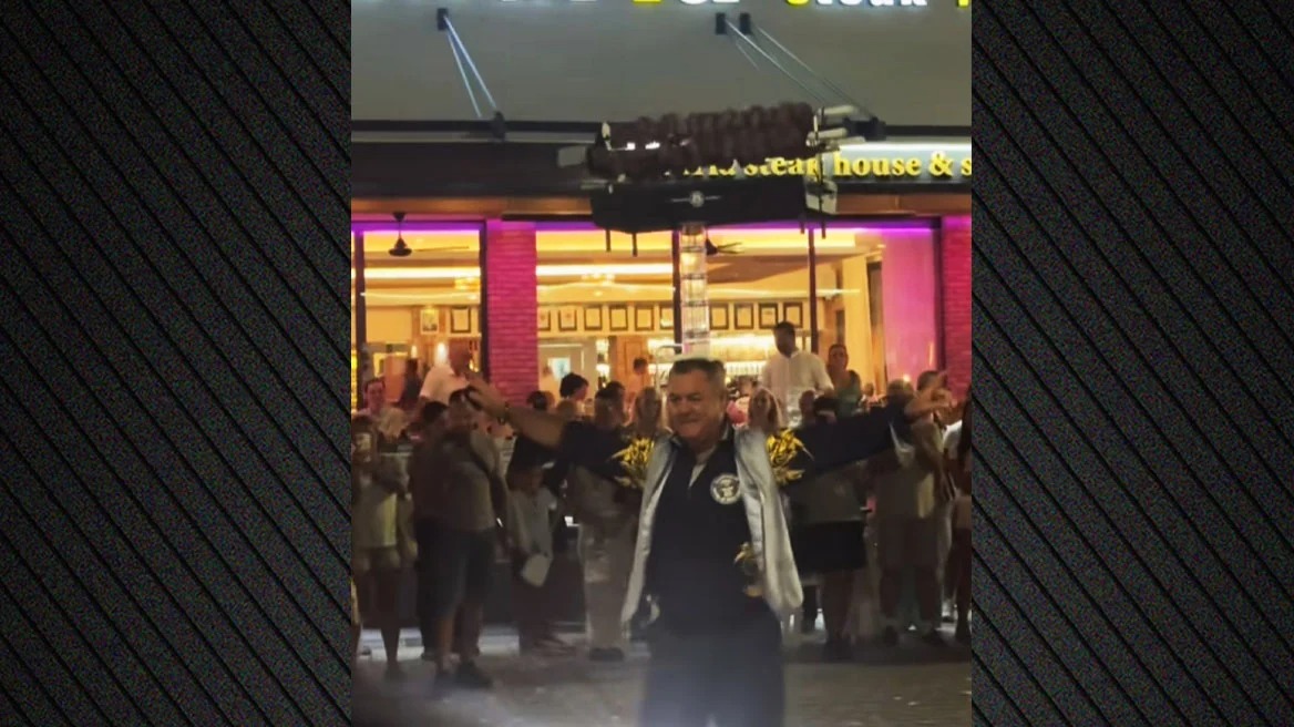 Έξω από ένα εστιατόριο με κρέατα κατά τη διάρκεια κάποιου πανηγυριού ο άνδρας άρχισε να χορεύει στη μέση του δρόμου. Όμως, δεν ήταν απλά ακόμη ένας χορός, καθώς ταυτόχρονα στο κεφάλι του ισορροπούσε μία σούβλα που έψηνε κοντοσούβλια όσο εκείνος χόρευε!