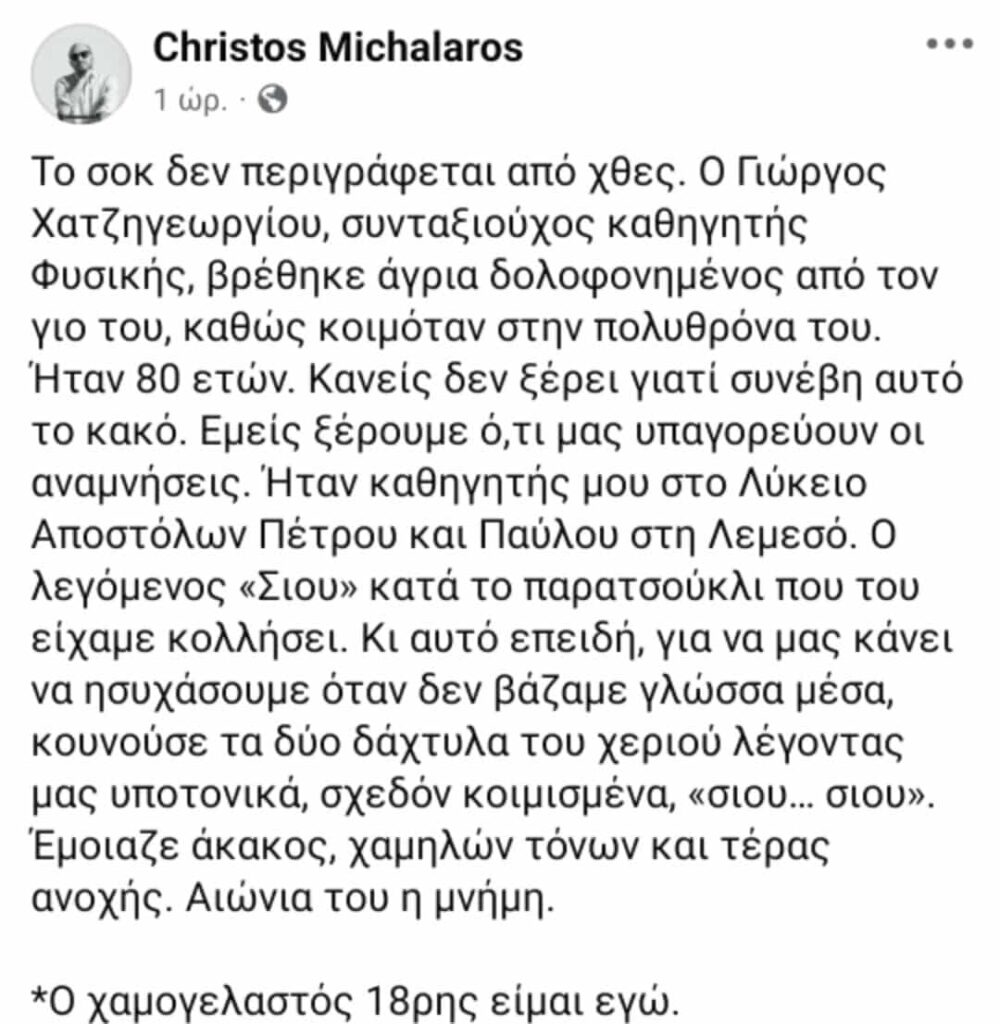 Η συγκινητική ανάρτηση Χρήστου Μιχάλαρου για τον καθηγητή του, θύμα της φρικτής τραγωδίας στη Λεμεσό (εικόνες)