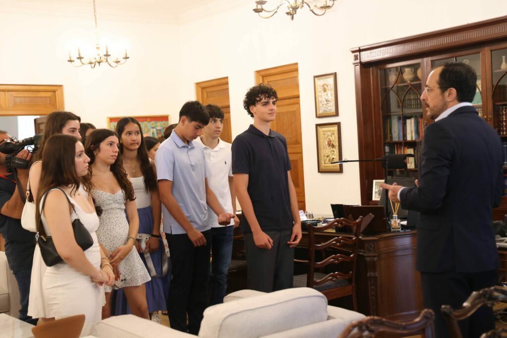 Ο Πρόεδρος της Δημοκρατίας, Νίκος Χριστοδουλίδης, υποδέχθηκε την Τρίτη στο Προεδρικό Μέγαρο ομάδα παιδιών της κυπριακής ομογένειας από τις Ηνωμένες Πολιτείες και τον Καναδά, ηλικίας 14 έως 17 ετών.