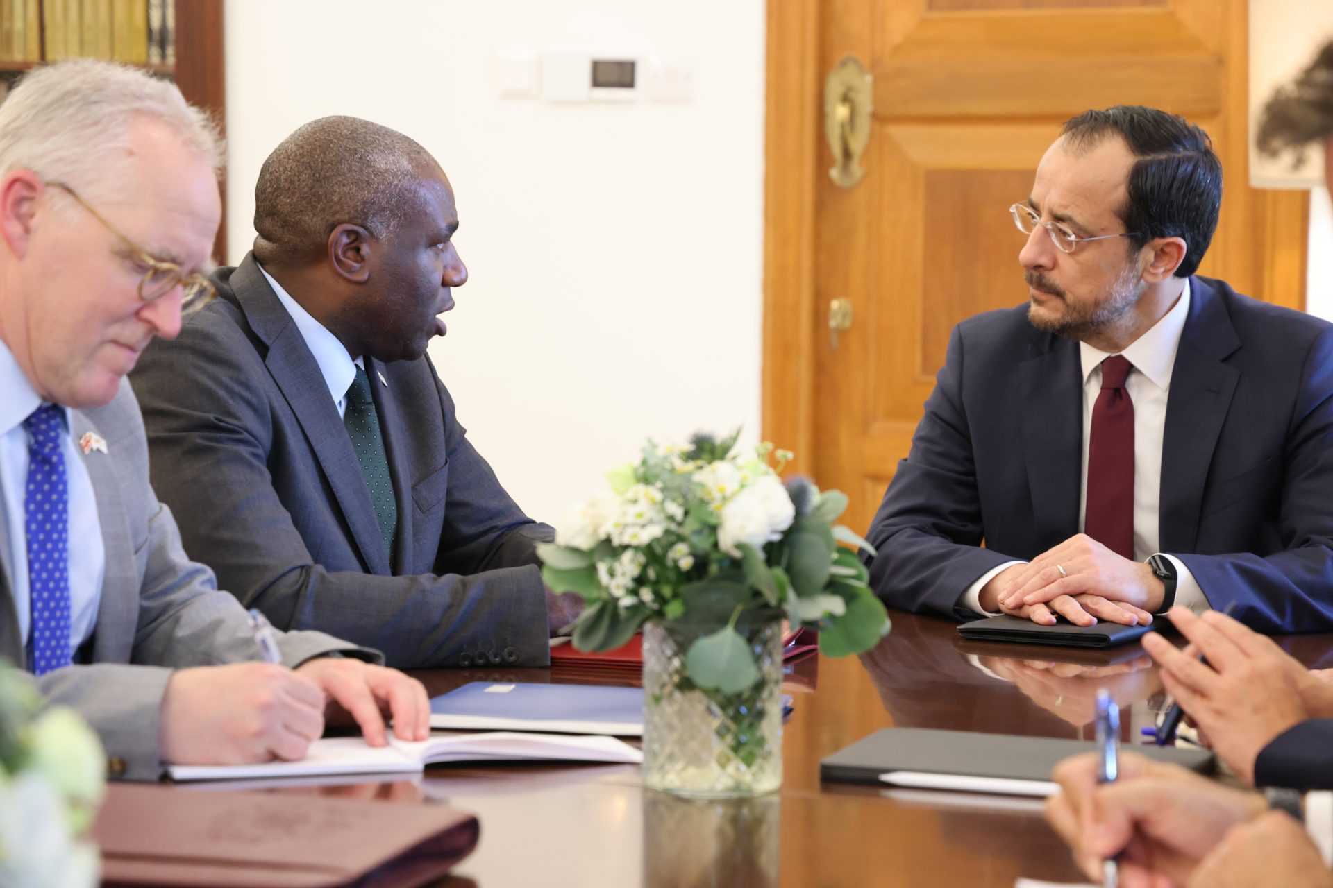 Ο Πρόεδρος της Δημοκρατίας κ. Νίκος Χριστοδουλίδης δέχθηκε σήμερα, το απόγευμα, στο Προεδρικό Μέγαρο, τον Υπουργό Εξωτερικών του Ηνωμένου Βασιλείου κ. Ντέιβιντ Λάμι, στην παρουσία, ανάμεσα σε άλλους, του Υπουργού Εξωτερικών κ. Κωνσταντίνου Κόμπου και του Κυβερνητικού Εκπροσώπου κ. Κωνσταντίνου Λετυμπιώτη.