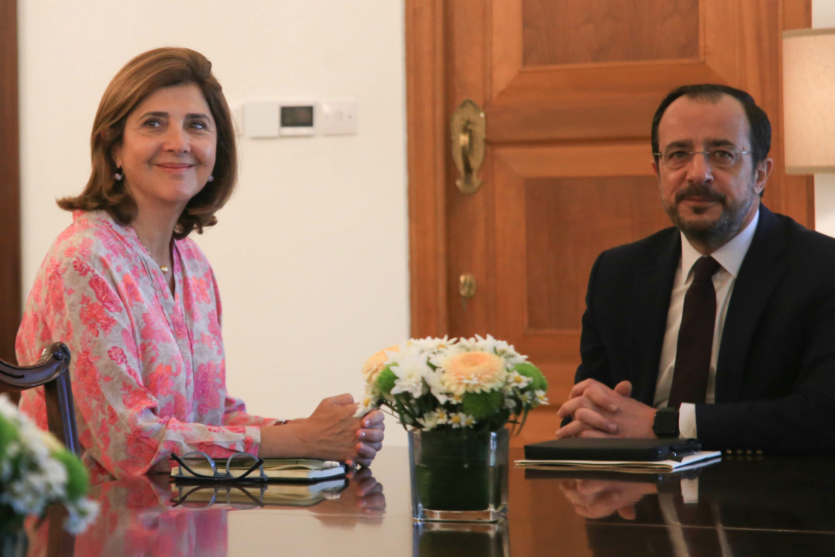 Στην Κύπρο για νέο κύκλο επαφών βρίσκεται η Προσωπική Απεσταλμένη του ΓΓ του ΟΗΕ, Μαρία Άνχελα Ολγκίν, η οποία έφθασε την Πέμπτη το βράδυ στο νησί.