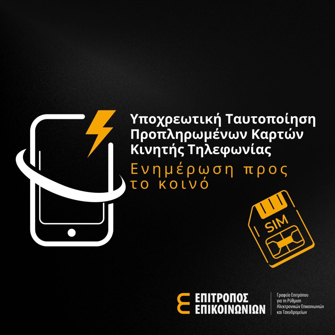 Υποχρεωτική καθίσταται η ταυτοποίηση όλων των προπληρωμένων καρτών κινητής τηλεφωνίας, με καταληκτική ημερομηνία την 10η Νοεμβρίου 2025, σύμφωνα με τις πρόνοιες του σχετικού Νόμου που ψηφίστηκε από τη Βουλή την άνοιξη του 2024. Όπως ενημερώνει το Γραφείο Επιτρόπου Επικοινωνιών (ΓΕΡΗΕΤ), η εν λόγω ρύθμιση αποσκοπεί στην ενίσχυση της ασφάλειας και τη διασφάλιση της αδιάλειπτης παροχής τηλεπικοινωνιακών υπηρεσιών.